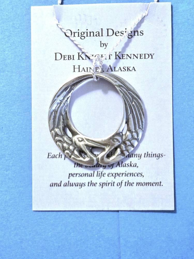 This solid sterling silver Great Blue Heron designed in a mobius circle has been helpful to me as a symbol of feminine strength and self reliance. A thoughtful gift idea, it is made in Alaska like all of my creations.